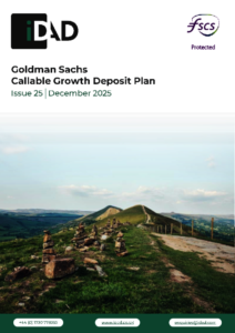 The IDAD Goldman Sachs Callable Growth Deposit Plan Issue 25 – December 2025 is a 6 year 1 week Deposit Plan linked to the performance of the FTSE 100 Index. The Deposit Plan is constructed to offer a potential return of 8% per annum (2% per quarter) to the final Callable Observation Date if the Deposit Taker calls the investment early, or 300% participation in any growth of the FTSE 100 Index at maturity. This plan is only available on an Advised basis.