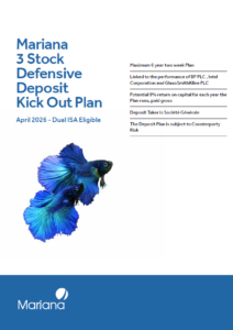 The Mariana 3 Stock Defensive Deposit Kick Out Plan – April 2026 is a maximum 6-years, 1-week investment offering a Potential Return of 9.0% for each year the Deposit Plan runs, paid gross.