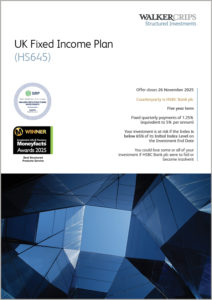 The Walker Crips UK Fixed Income Plan (HS645) plan is a maximum 5-years investment offering Fixed income of 1.25% per quarter (equivalent to 5% per annum) depending on the performance of the FTSE 100 Index.